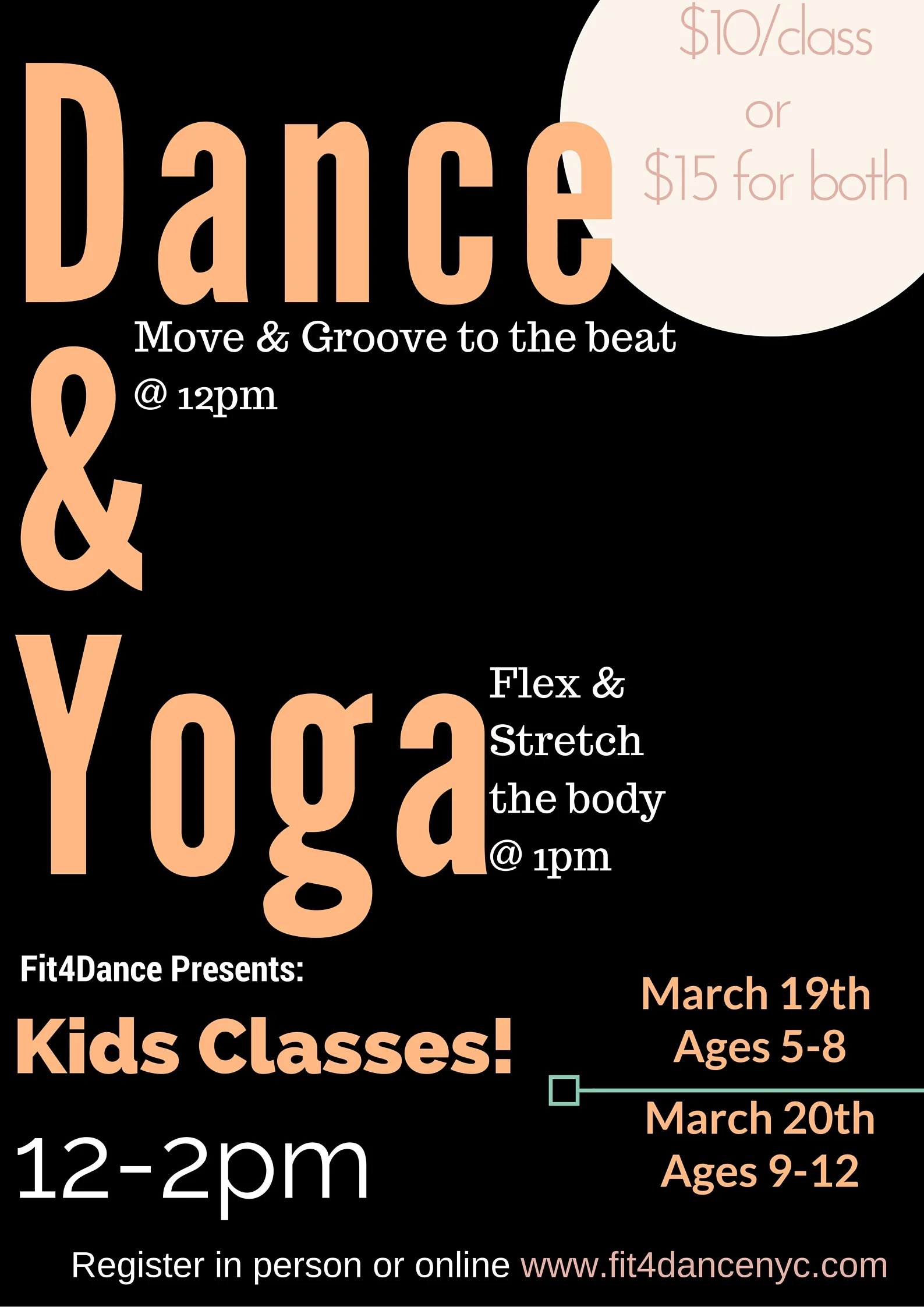 There are many proven physical, mental and emotional benefits for practicing yoga. These includes increased flexibility, muscle strength, blood flow and circulation, better self awareness, improved decision making skills, and the list goes on and on. Now imagine the same benefits, but for your child! Fit4Dance's Kids Yoga Class will teach the foundation of yoga through a variety of age appropriate exercises aimed to increase self love and love to others. Each class will incorporate asana (physical postures), pranayama (breath practices), meditation, relaxation and of course, PLAY!