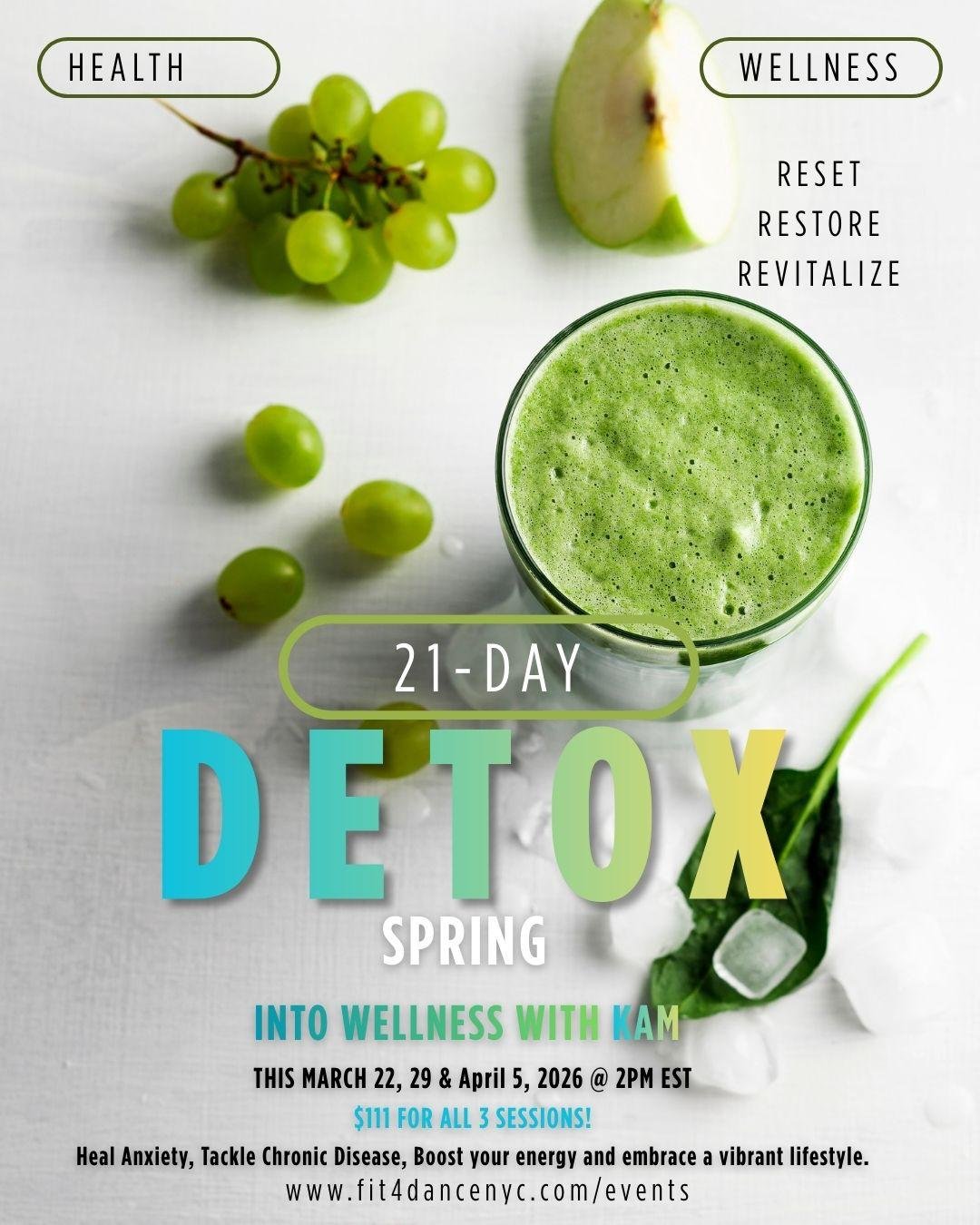 Refresh your body and reset your mind this spring with our 21-Day Spring Detox led by Kam. This virtual wellness series is designed to help you gently cleanse, restore balance, and step into a more vibrant, energized version of yourself.