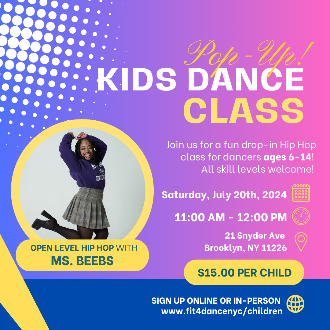 Shake Up Your Child's Summer with a Fun-tastic Hip-Hop Class this Saturday! We're excited to invite your little dancer to our upcoming open level hip-hop class (ages 6-14) with Ms. Beebs this weekend! It's the perfect opportunity for them to learn some cool new moves, make new friends, and get a sneak peek into what our exciting dance program will offer this fall.